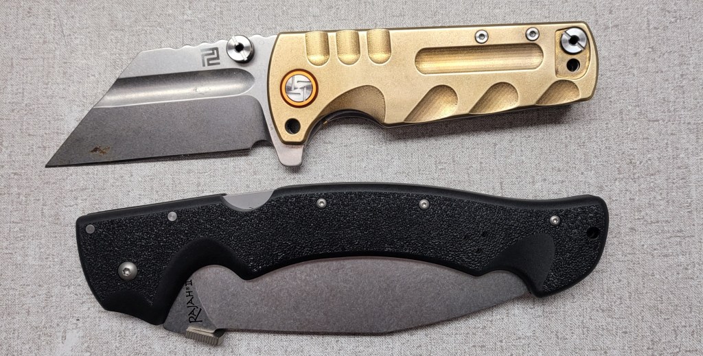At 8 1/2 inches deployed the Artisan Proponent is not a small knife by any stretch – the Rajah II is 8 1/4 inches – folded . . .