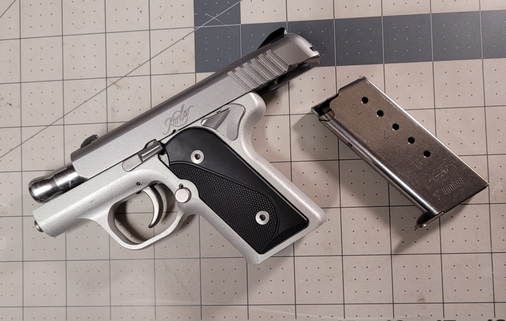 The Kimber SOLO CARRY STS is sold as a pocket pistol – chambered in 9mm – 6 plus one in the chamber – yes siree Bob – 7 rounds of 9mm on tap – super high tech – if it will run more than 3 rounds . . .