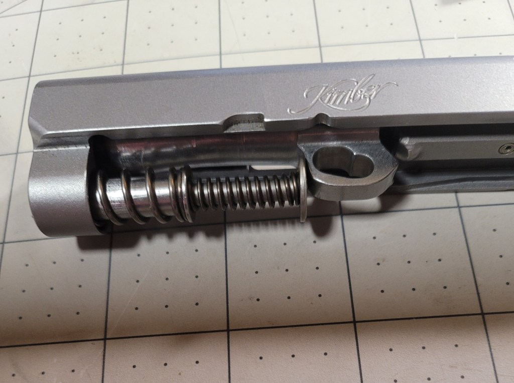 Pretty much wherever it is when you put it ( or attempt to ) back together is where it is – really Kimber?