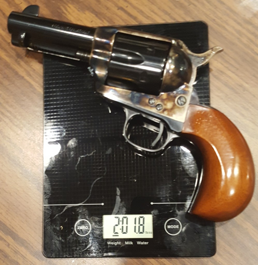 A Uberti 1873 Cattleman – 3 1/2 barrel – Bird’s Head grip – and in a real caliber – 45 Colt!! Boys and girls let me tell you – it is SWEET!! I have always had a liking for “birds head” grips but everything feels like it’s going to roll out of my grip – feels like it’s going to pitch over forward. Spied this hiding in the display case and asked the man if I could fondle it – I promised not to lick on it – he’s like ok . . . – but if you lick on it you ARE buying it!! – they know me – LOL! With the 3 1/2 inch barrel it felt great! Hell I didn’t want to let go of it while he smiled and took my money but he had to get the numbers off of it. You really need to slip over to Guns Unlimited at check out the stuff they have on sale – this little sweetheart was marked down to $379 – ran home and cleaned the factory stuff off – almost like a thin layer of hard preservative – ran to the range and dumped 30 rounds through it- Oh My . . .