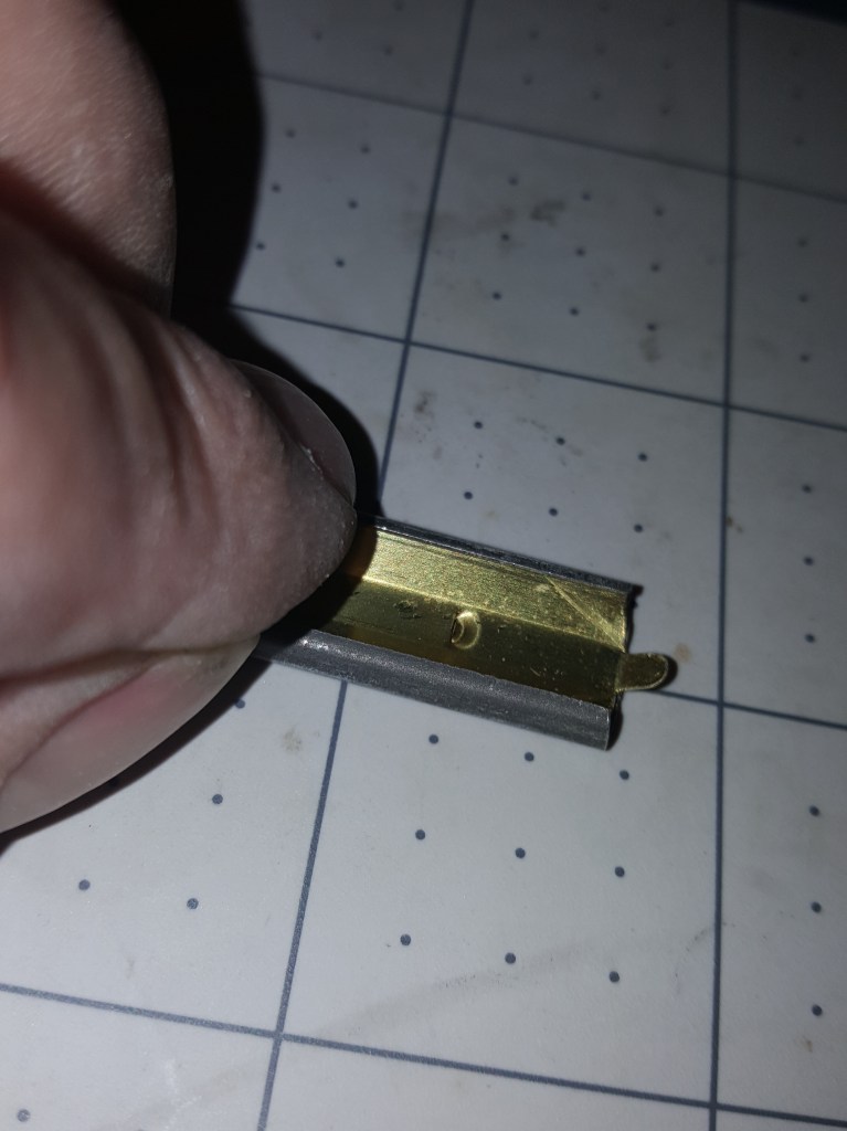 Oh well – on with the show . . . on one end of the stripper clip – bend the little tab up so the freedom pill doesn’t slide right on through –