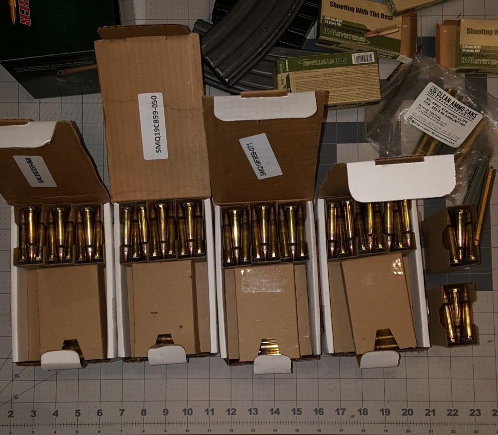 Hmmm . . . 3000 plus rounds of 5.56 – stripper clips – some empty mags – cardboard sleeves – a new Caldwell loader to play with – I believe brothers and sisters – I believe – LMAO !! – I believe I can manage to stay out of the weather and trouble for a little bit at least . . .