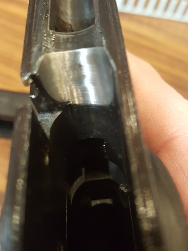 A close up of the “blems” on the gun – the two spots to the rear of the ejection port is oil reflecting light . . .