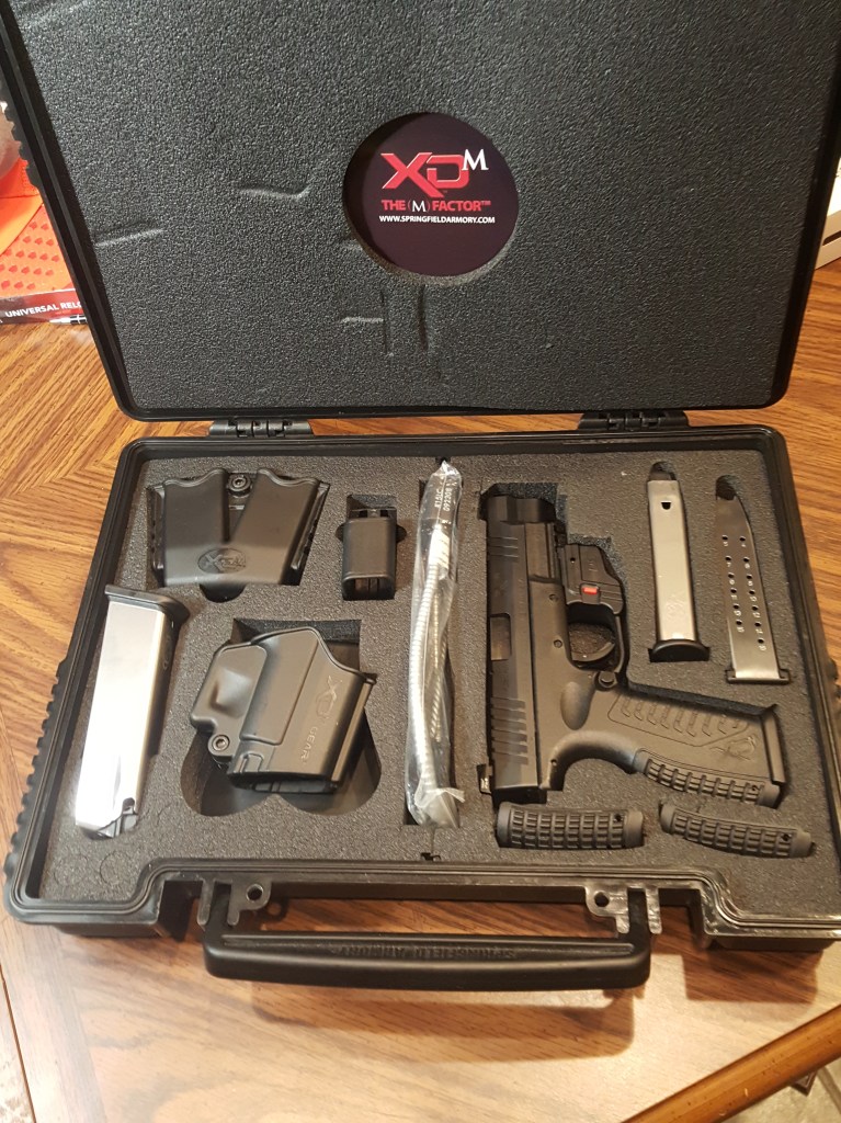 The Springfield XDM series sorta went right by me – never paid it much attention either way – good – bad – whatever . . . Went by GGGPawn and Bill ran this by me – I’m like “sure, why not -the price is right!” Got this small suitcase and it is plumb full of “stuff” – comes with about everything but ammo – as well as Trijicon night sights / laser and a recoil spring / guide rod upgrade – cool stuff