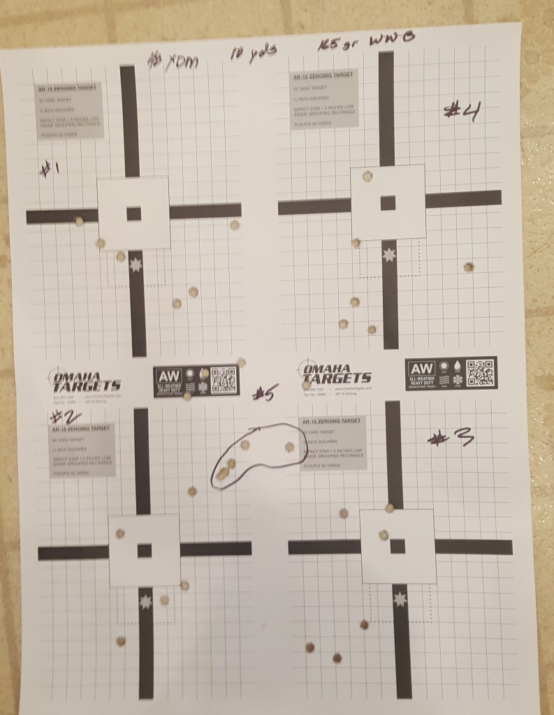 Groups 1 through 4 was me chasing the laser – group 5 was 5 rounds with the laser off – not really a fan of targeting lasers – they actually tend to distract me more than anything else – maybe shoot 5 or 10 thousand rounds just using a laser I might get used to them – but at this point it’s kind of an old dog / new trick thing – I admit I let the XDM line go right by me – I like the way it feels / shoots / recoil management . . . I changed the back strap out to the smallest one and it feels a whole lot better – I think I should have done that before I shot it – Really looking forward to running it hard and see how it feels and shoots with the different back strap and a little more practice – might have to look around for one in 45acp – and I probably won’t have to look too hard as there are a lot of them out there in pawn shops and gun stores – if you are looking for a decent polymer framed pistol and just can’t warm up to another Glock – take a closer look at the Springfield XDM series – they are pretty neat!!