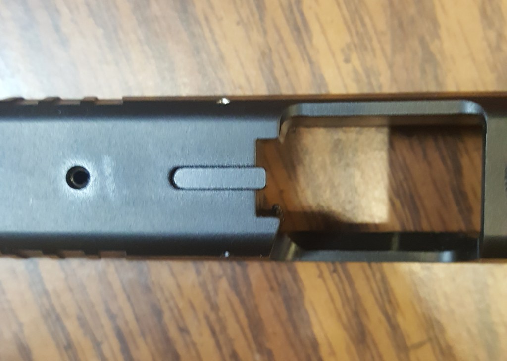 A look under the slide – firing pin block / striker – good looking machine work – no “chatter” marks – nice sharp surfaces . . .