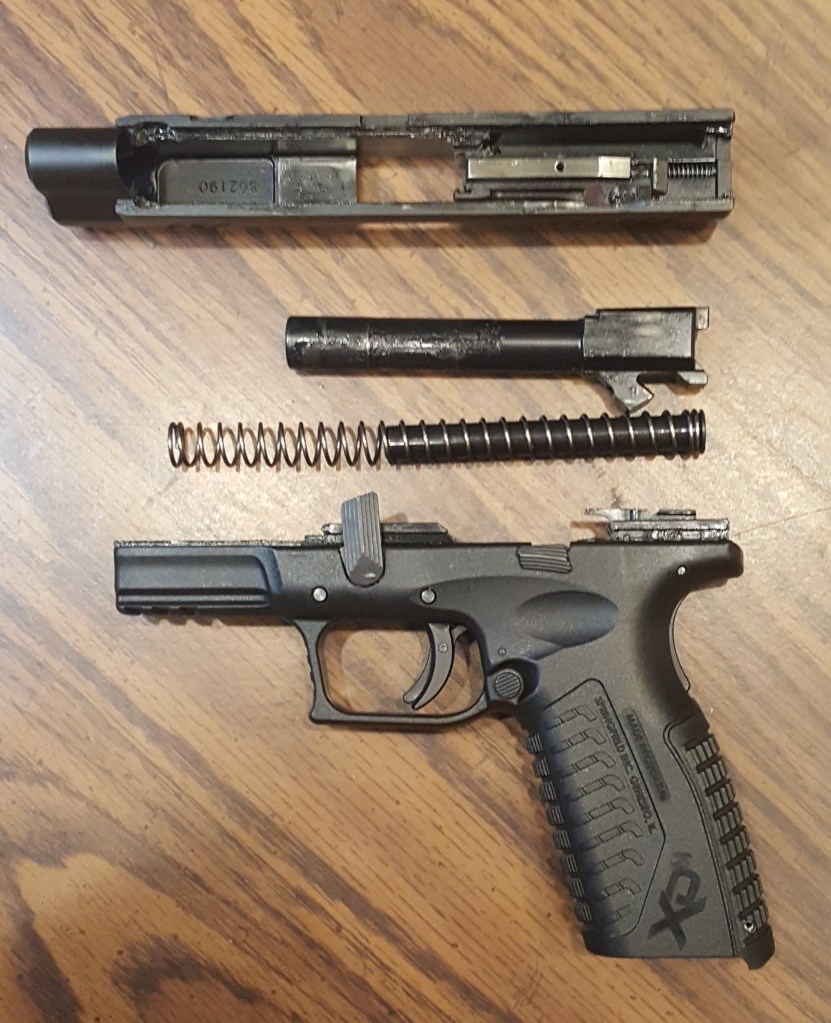 Take down is simple as it gets – slide locked back – rotate the lever – slide comes right off – easy as it gets . . .
