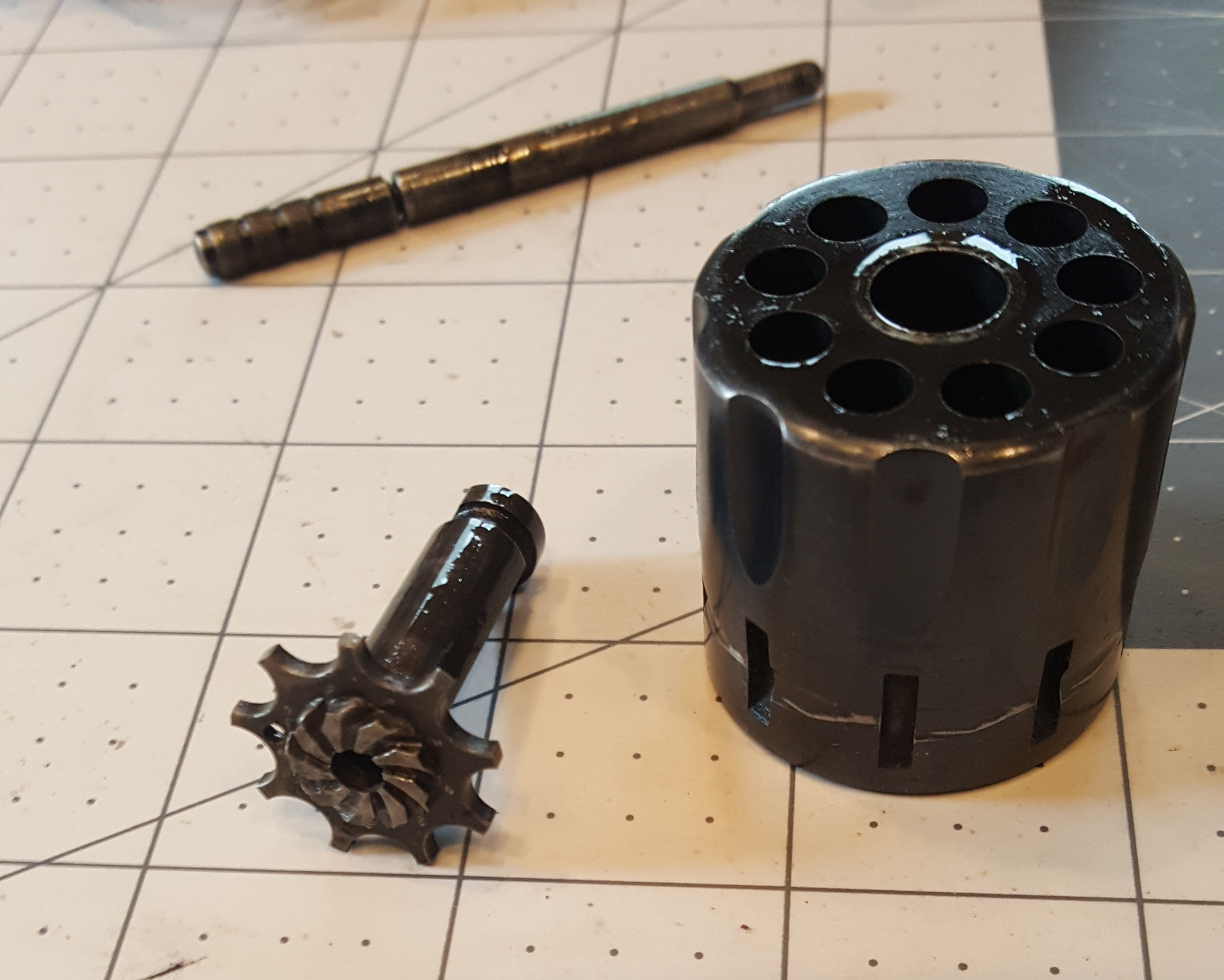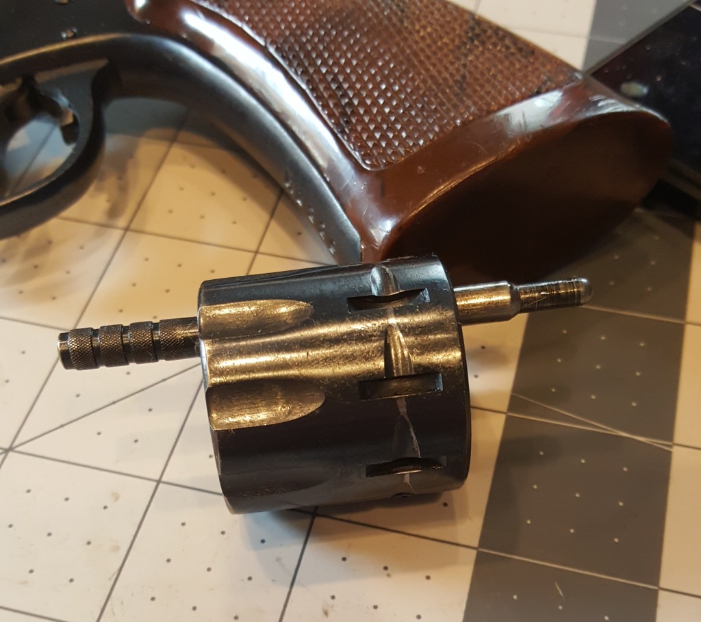 In keeping with the style of the times – it’s far easier and cheaper to replace a center “bushing” ( not an extractor on this model ) than the entire cylinder when worn . . .