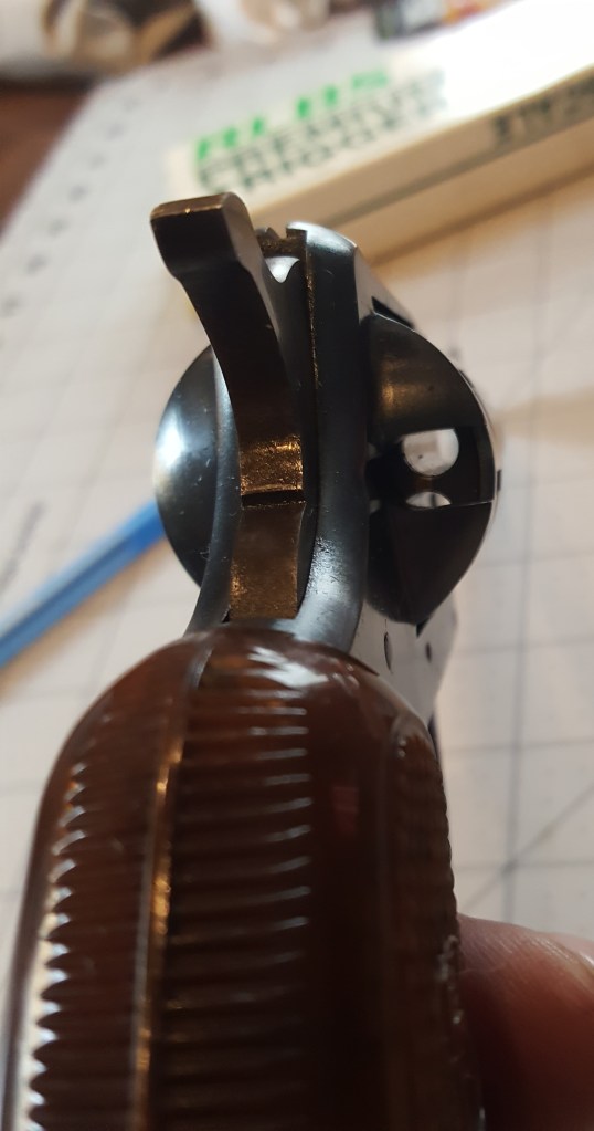 The neatest part – it has the plastic grips and they are not all beat up – most had wood grips and the ones with plastic grips intact are hard to find – not rare by any stretch and the wood target grip models are more numerous – it’s just fun to find one with the plastic grips intact . . .