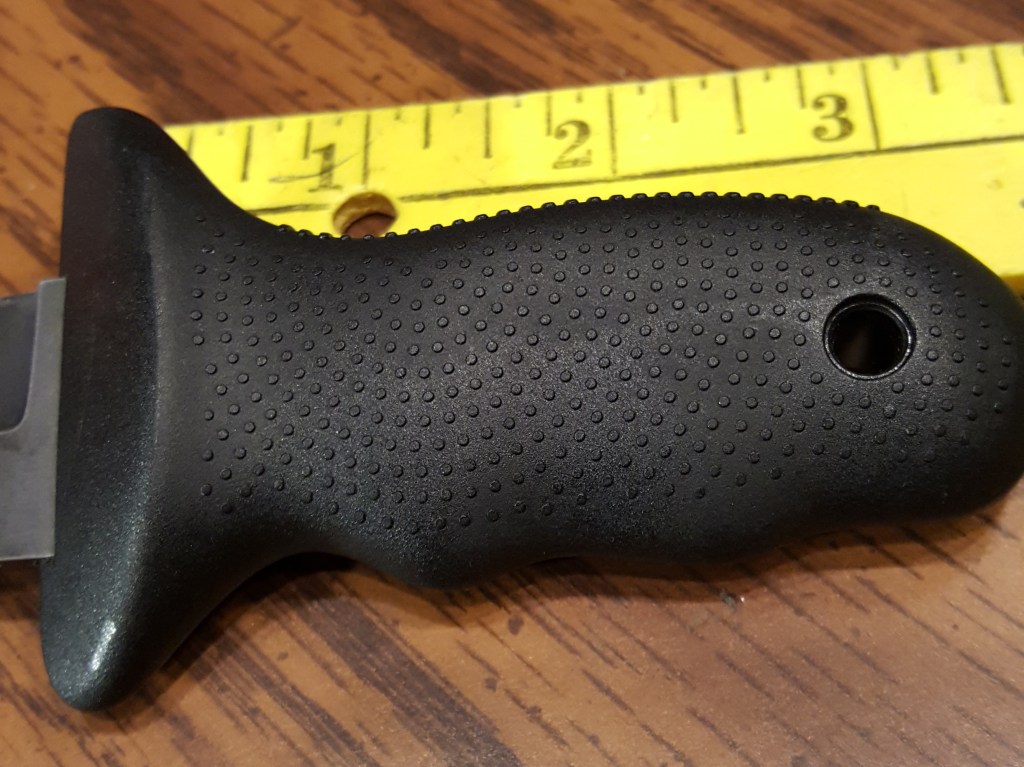 The handle texture is aggressive enough to get a good grip on – and it’s not a “sticky” rubber grip that’s going to grab at your clothing – good compromise . . .
