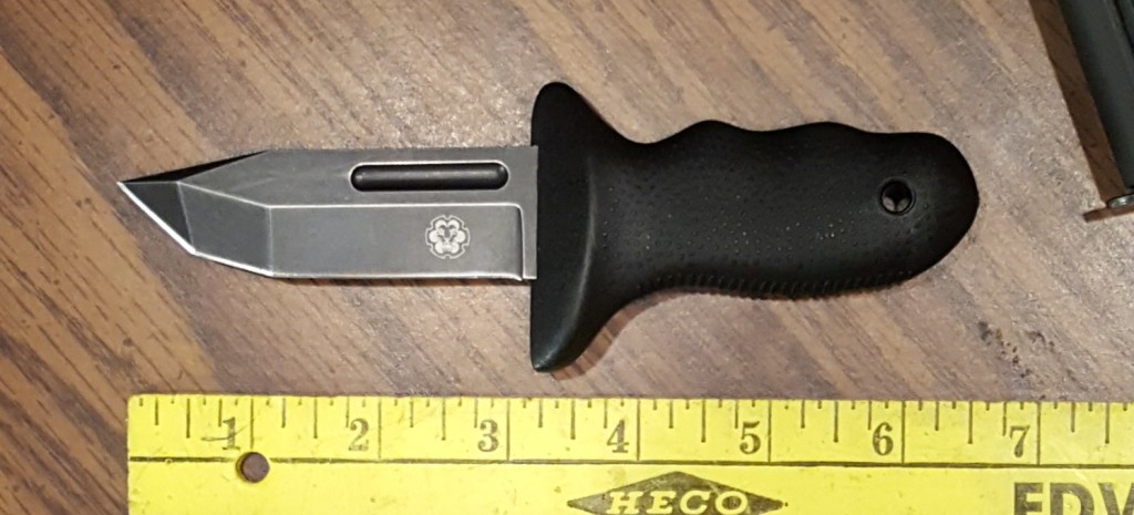 Size wise it’s pretty much right where it needs to be – 3 1/4 inch blade / 6 5/8 OAL – small enough that it carries discretely for a fixed blade knife . . .