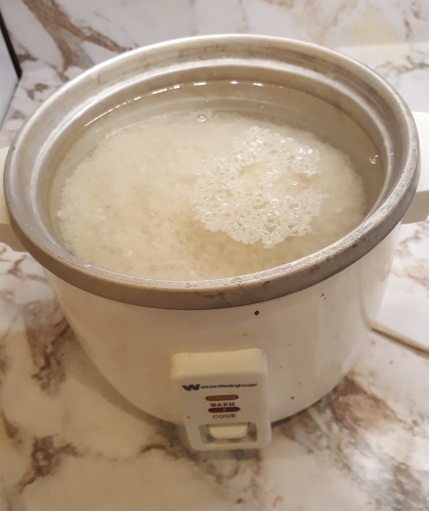 Into the cooker – lid on – plug it in ( very important step!! ) – push the lever down to cook . . . 25 minutes or so later rice done right – A rice cooker ranks right up there with a toaster or a flush toilet – one of the high spots of civilization . . .