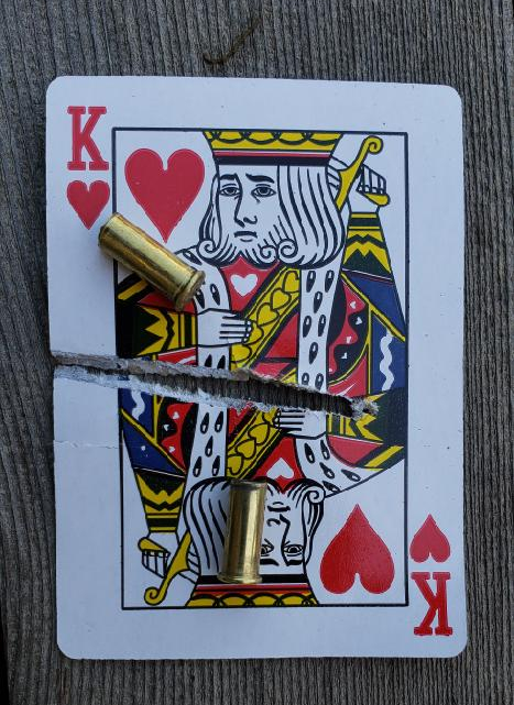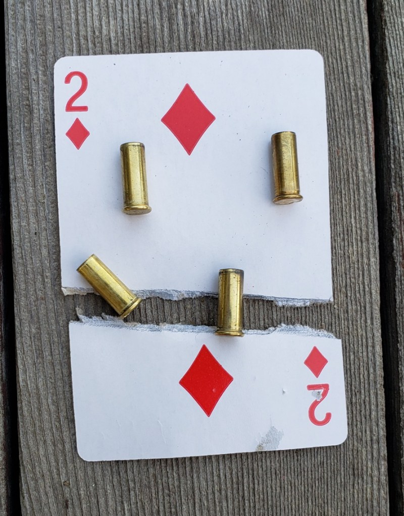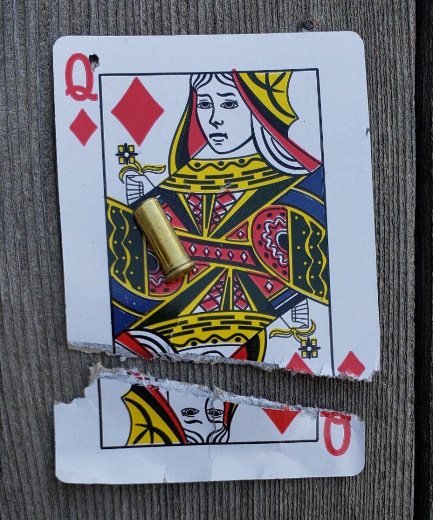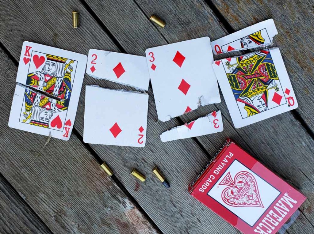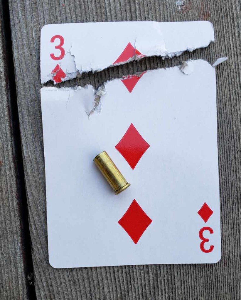 A little card cutting at 50 yards – really good conditions – relatively calm air AND steady hands – the shooting lane really helps with light wind conditions . . .