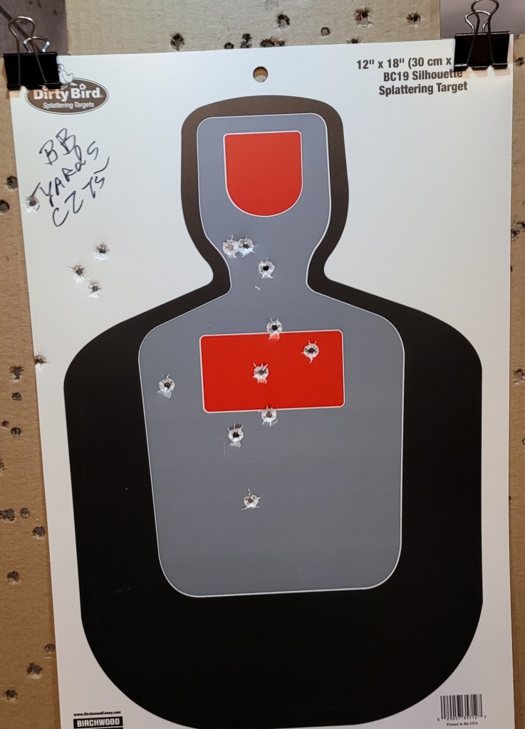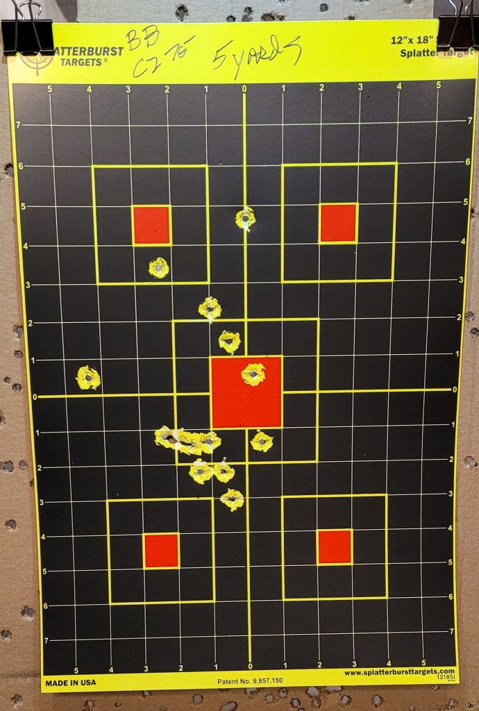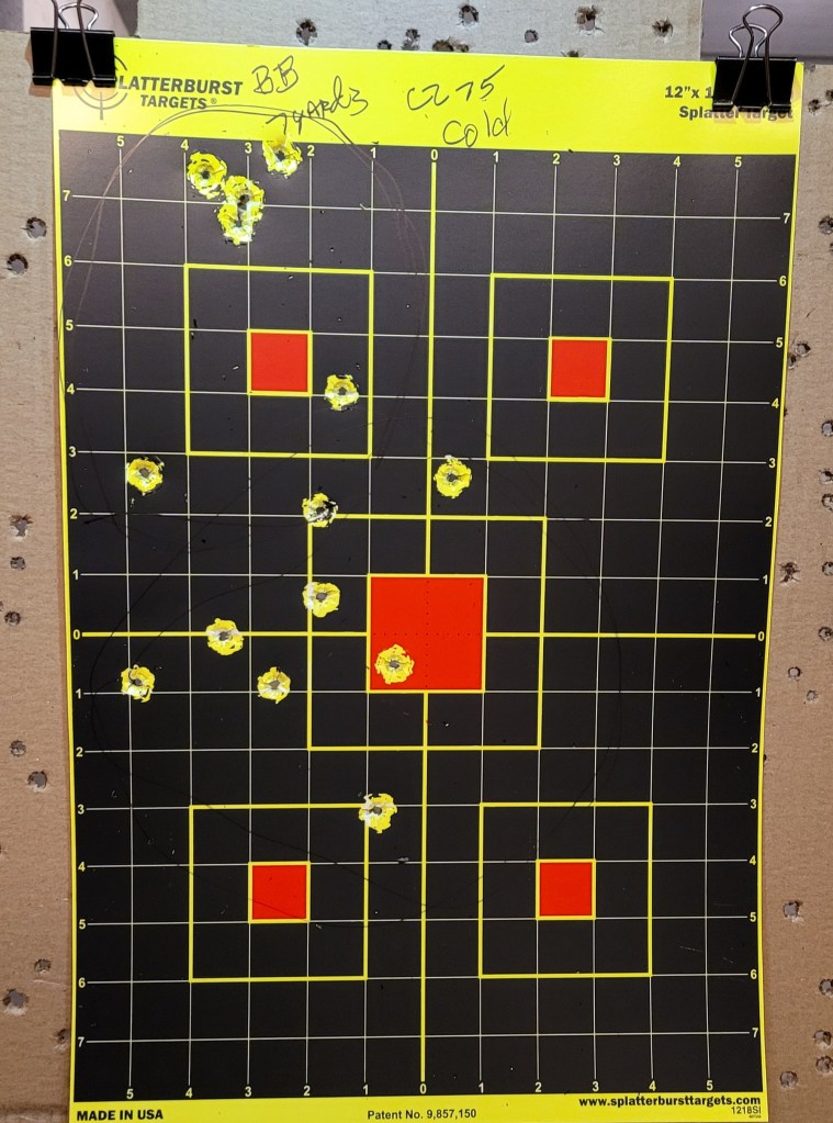 I ran a rapid mag – about 2 shots a second – through the CZ75B . . .