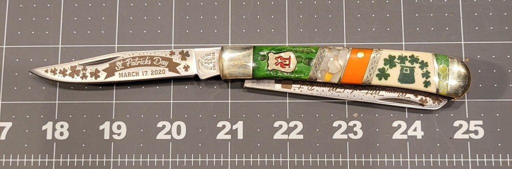 Cellphone kept focusing on the handle not the blade . . . took 8 or 9 shots – this is the best one – LOL!