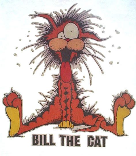 To me he almost looks like he has his inner Bill the Cat thing going on in this video . . .