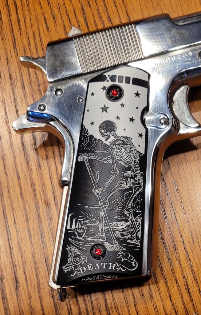 The grips and grip screws are from WICKEDGRIPS.COM – if you are trying to get your pistol to “that next look stage” – they can more than likely get you there . . .