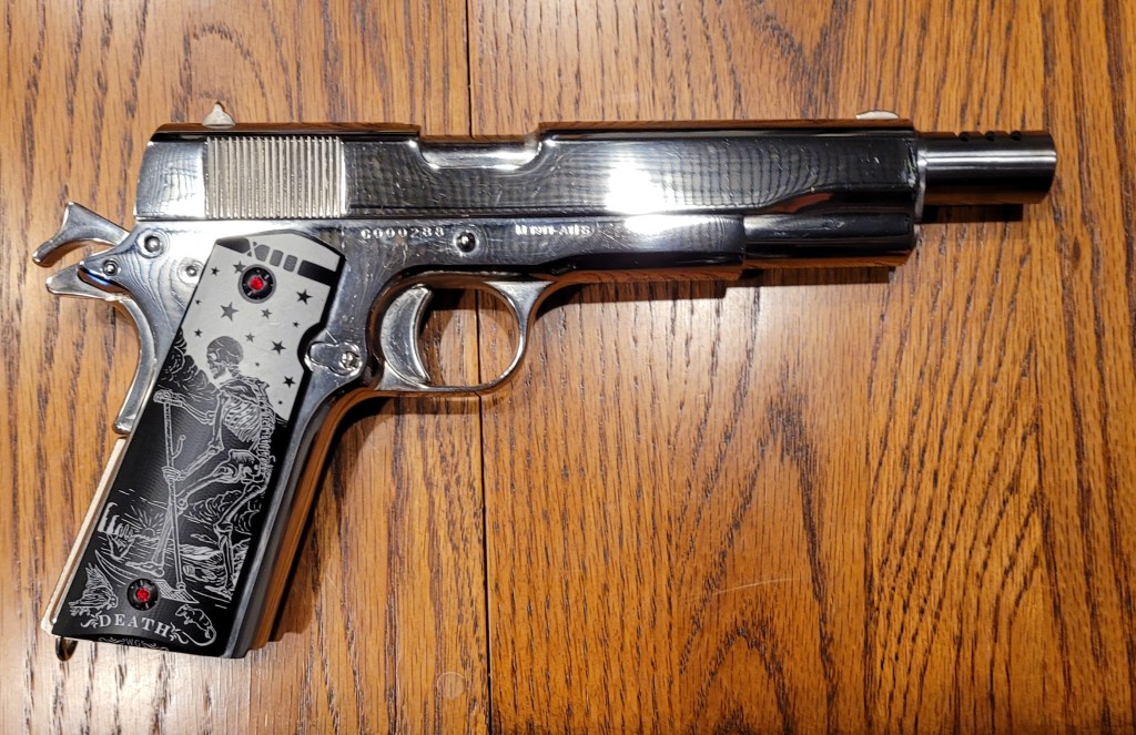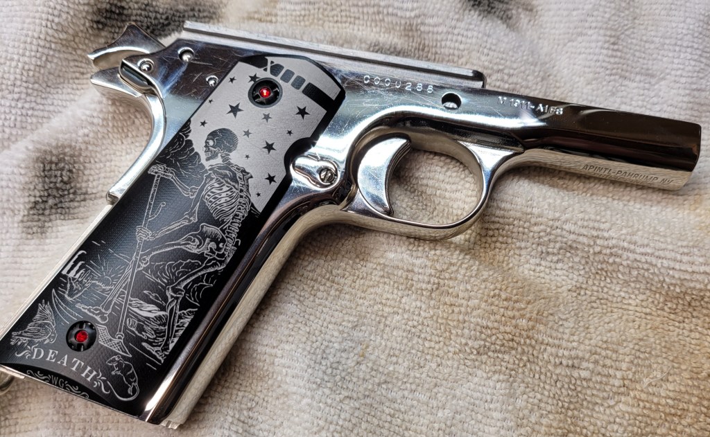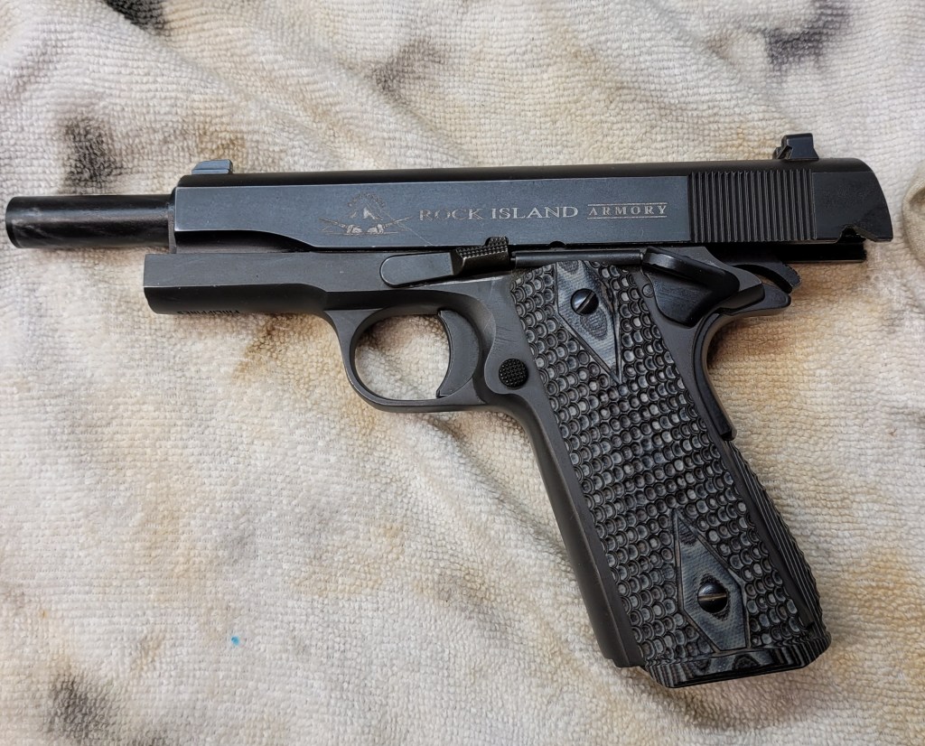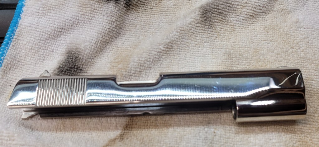 About that strip them down and wax thing – or in the case of my EDC Rock Island chase all the dust bunnies out – the Wilson combat recoil spring and guide thing – The base of the guide rod is a tiny bit bigger than the RIA – makes it a real bitch to get apart or put back together – I skinned about a 1/16 of an inch of the circumference of the base of the guide rod – the end that sits on the barrel – it was simple but a little bit of a time consumer – Mr Belt Sander to the rescue!!