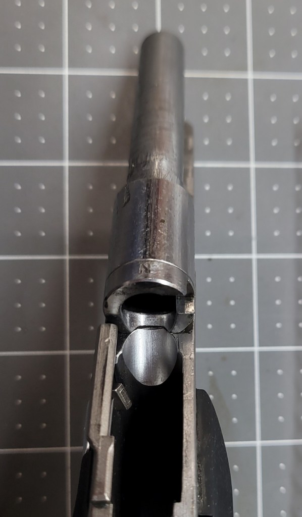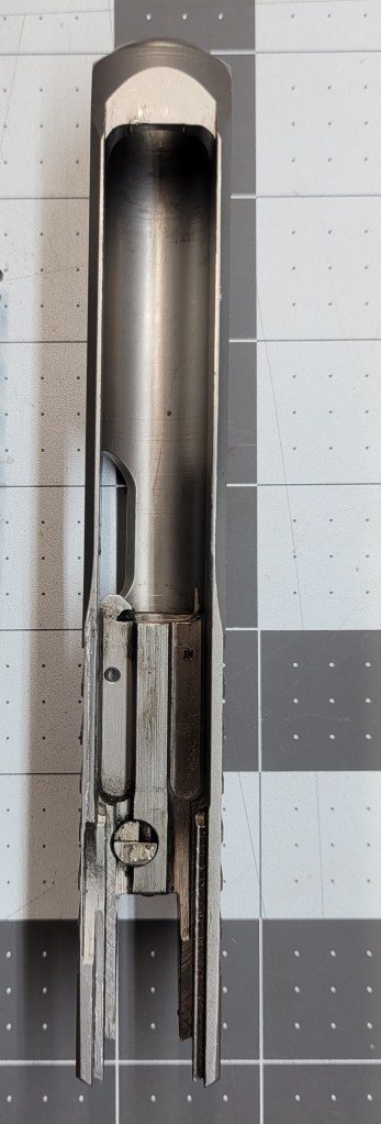 A look at the barrel and frame mating – the barrel is pressed in then pinned – it ain’t going anywhere . . .