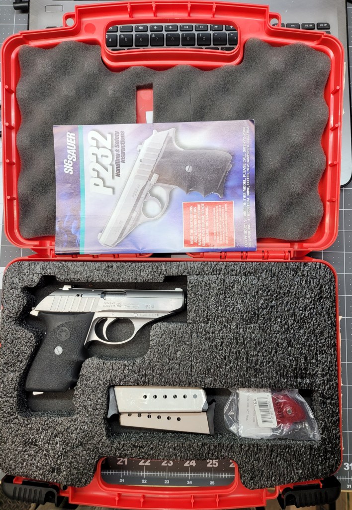 The little Sig P232 in all its glory – in the red box – factory certified used – with all the usual suspects – and two mags . . .