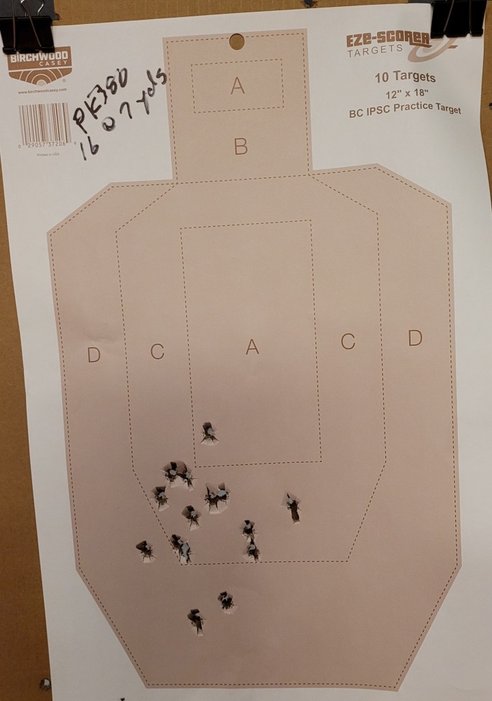 And dumped 2 more mags – the grip on the PK380 is a wee bit too small for me – I would have to burn through about a 100 rounds or so to really dial it in . . .