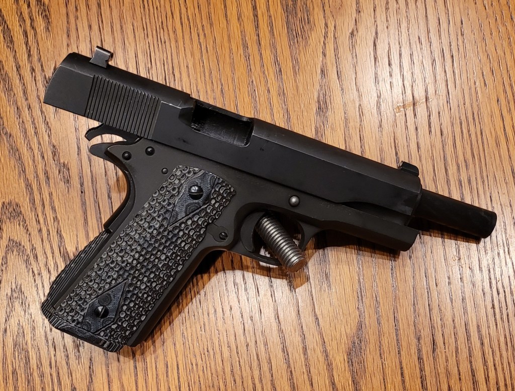 And honestly – there ain’t nothing “cute” about this one – other than night sights / G-10 Mag Well grip set / Wilson Combat recoil spring – it’s just a straight up government model in God’s chosen caliber – .45ACP – as handed down to St. Browning – LMAO! . . .
