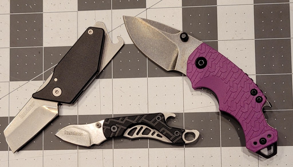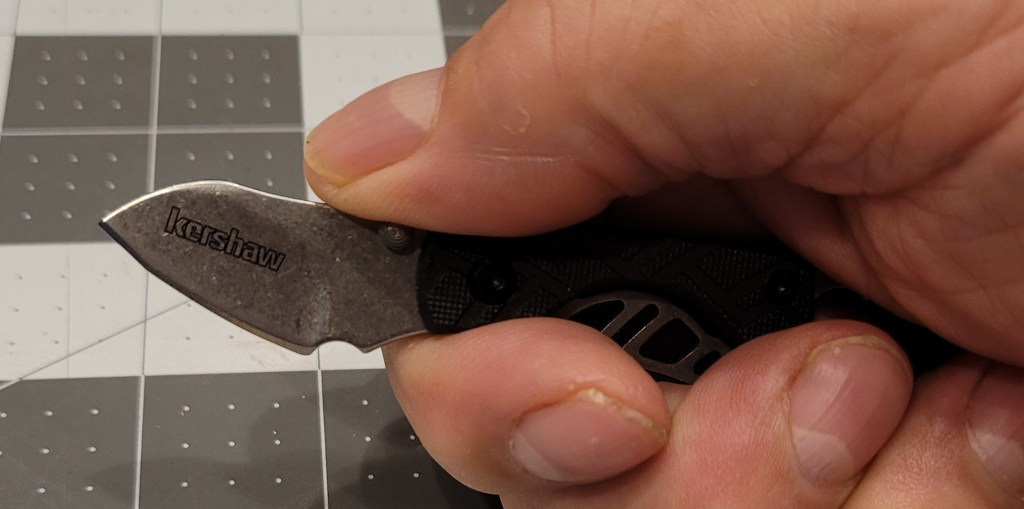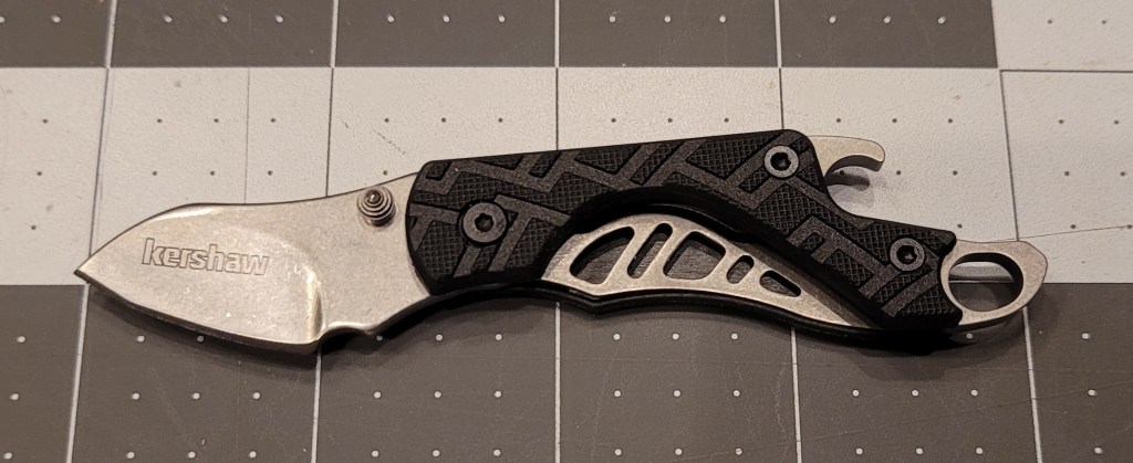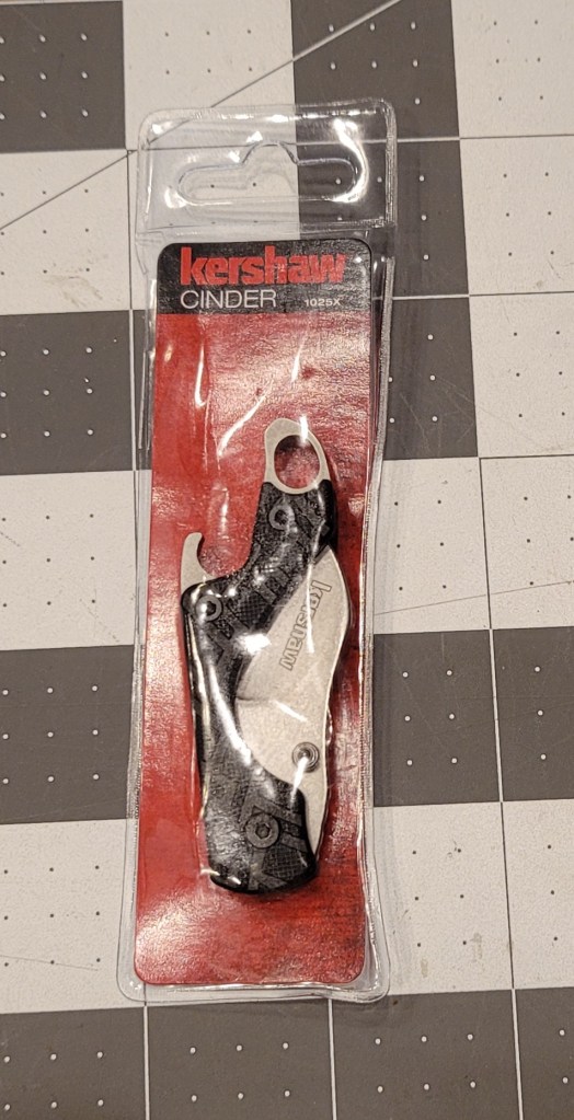 Simply put – think cheese / sausage slicer with a bottle opener – a true emergency response knife – LOL! Kershaw actually markets a knife called “Pub” – as well as one named “Shuffle” – but today we are looking the Cinder – so here we go . . .
