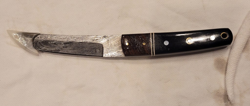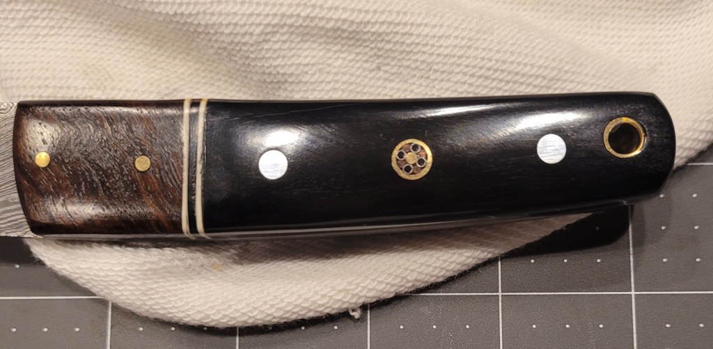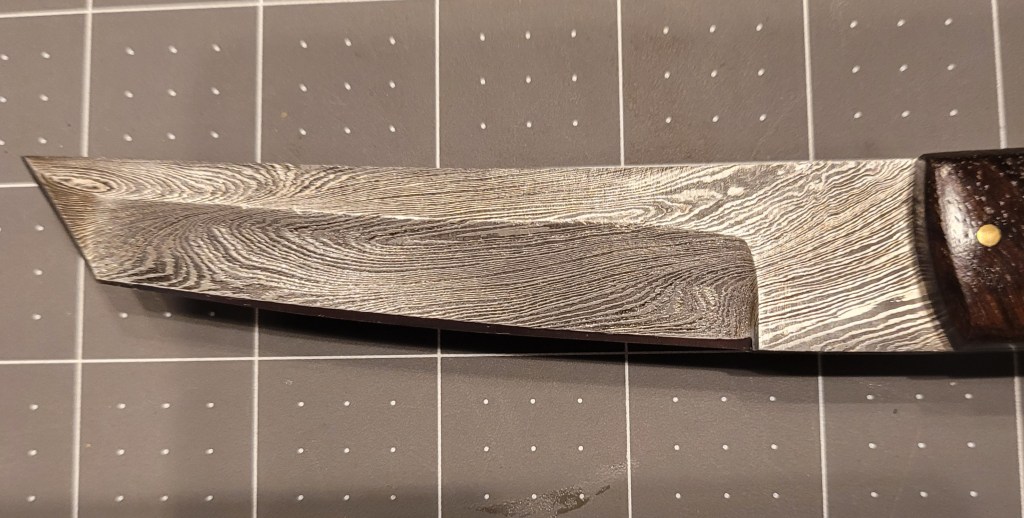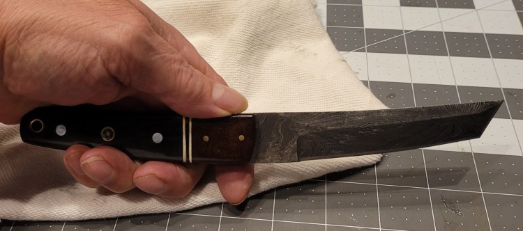 You can see some layering of the metal when you get to the back end of the tang – didn’t quite get it all polished out – but there is no doubt it’s “real” Damascus – more on that later . . .