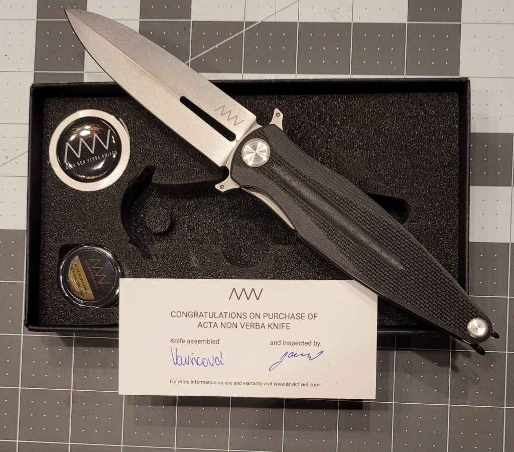 Acta Non Verba Knives envisioned the Z400 to be a dominating new deign to top off all of their other folding knives with characteristics that singles out this dagger over all your other pocket knives. This knife is dressed with a durable G-10 handle with 6061-T6 aluminum hardware and liner lock. The deep carry pocket clip is reversible, discreet, and slips this blade right in to your list of favorites for an everyday carry knife. The double guards are accented with two ANV Lumi Dots that glow after being exposed to light. The Sleipner stainless steel is stonewashed and is retracted by the aluminum liner lock concealed by the handle.Features: