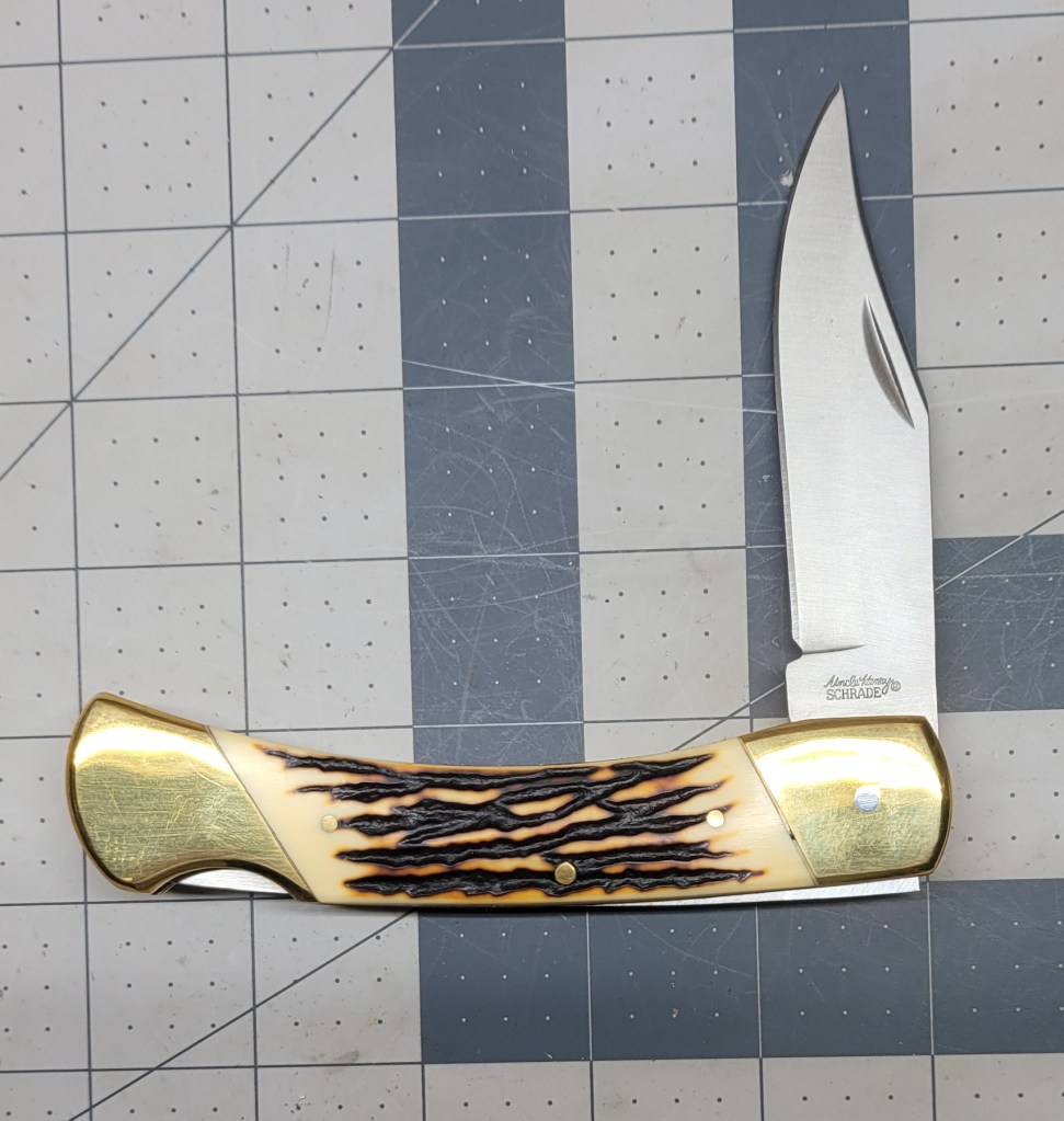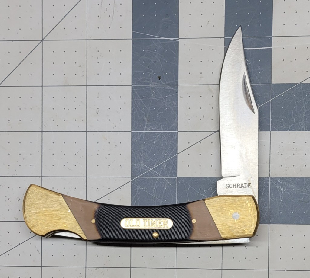 And third – Schrade Old Timer 7OT Cave Bear saw cut sales – blade is 7Cr17MoV . . .