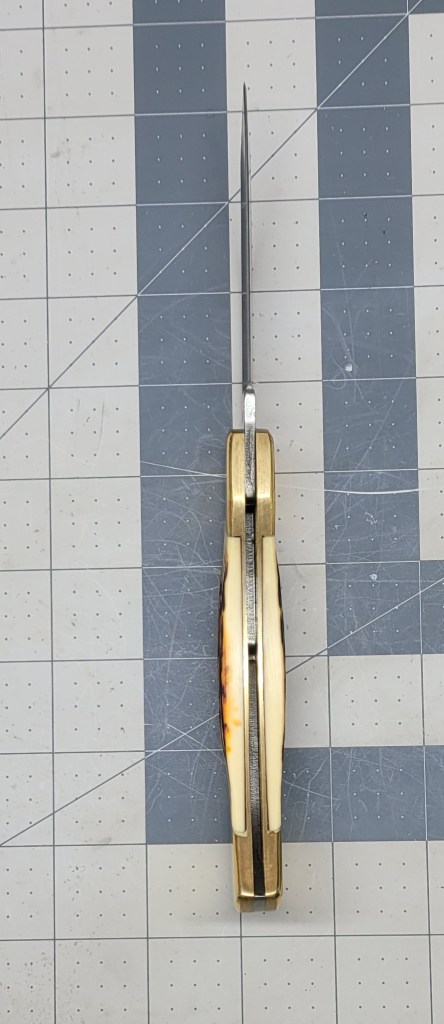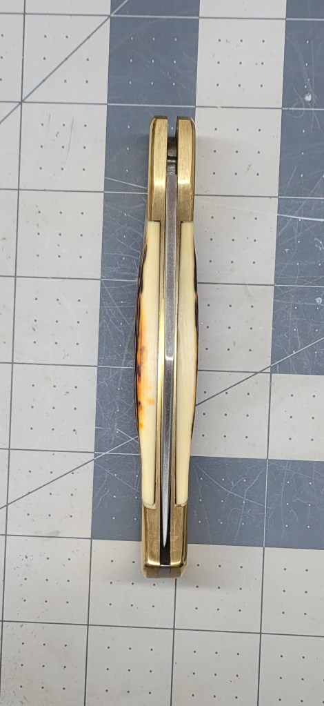 The scales give you an old time look – and the brass bolsters have a “patina” finish to them to lend to the old fashioned look – I’m sure that they would polish out – if you were so inclined . . .