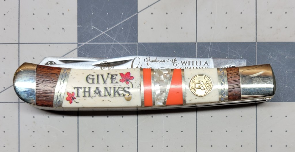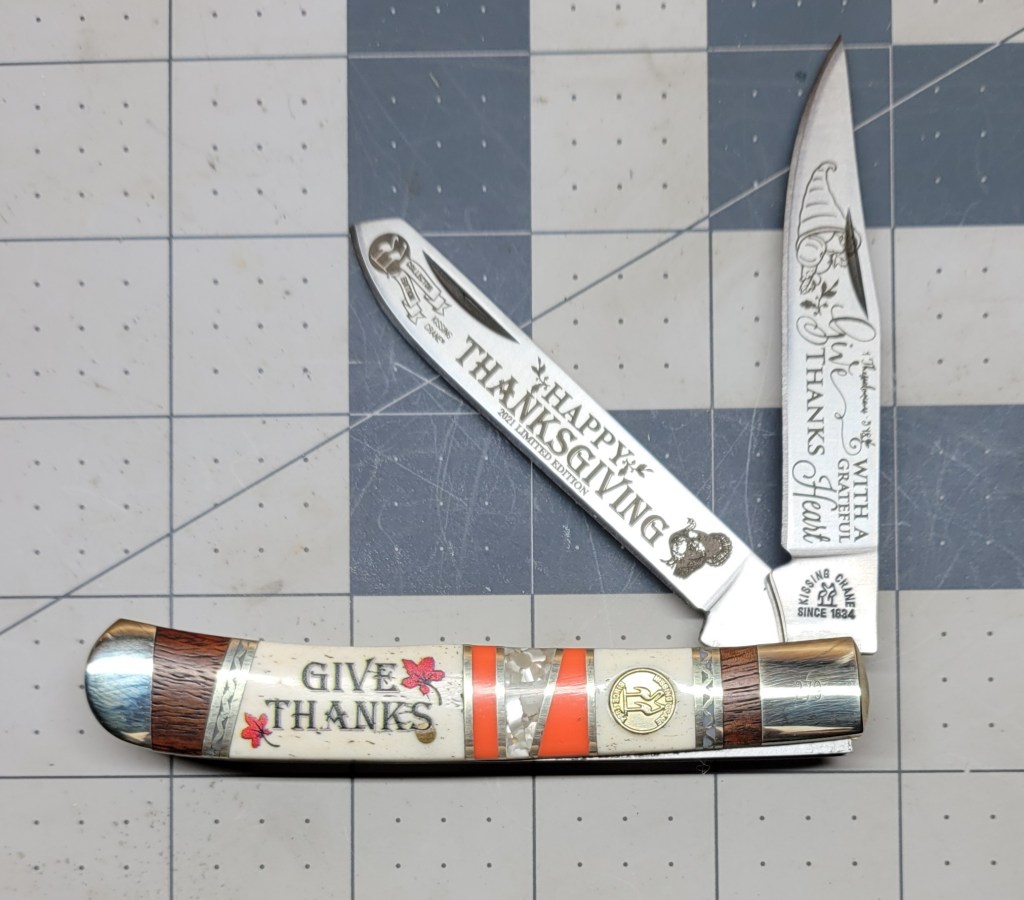 Kisssing Crane always comes through with their commemorative knives – and the 2021 Thanksgiving knife is not a disappointment – it is a real good looker . . .