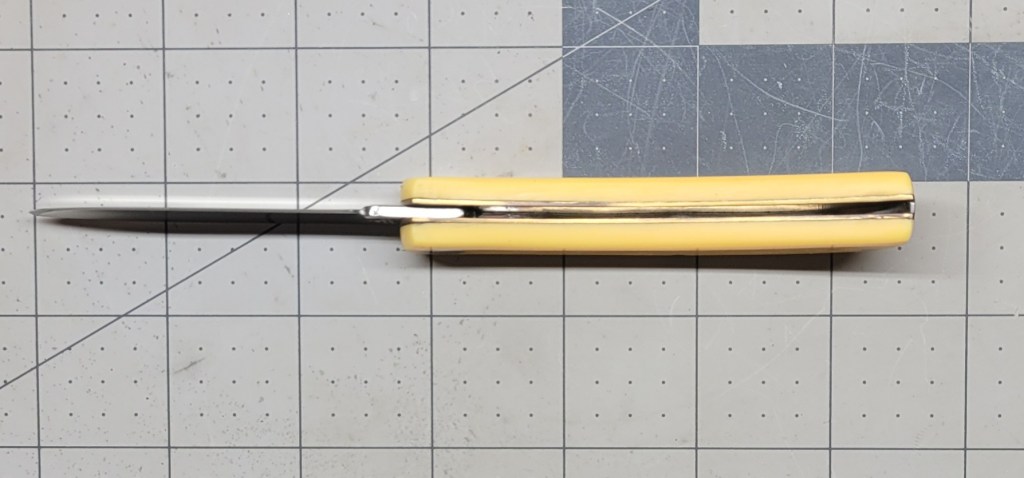 Looking “into” the little knife there is a little discoloration on the brass liners – at a price point of $13 bucks I’m not going into a critical “tizzy” about it . . .