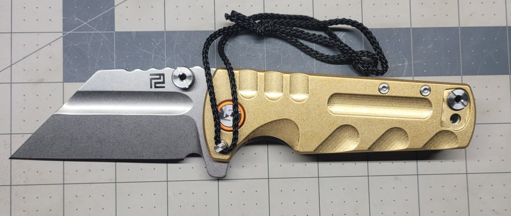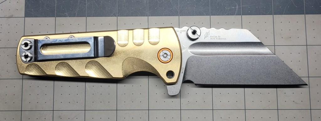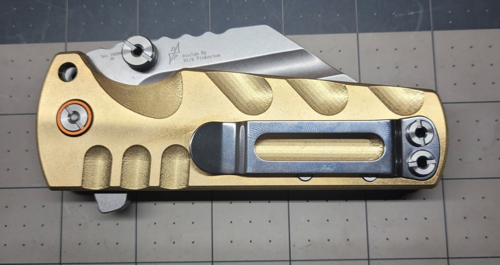 It only weighs 9.2 oz –Bruce – are you nuts or what?? – That’s over a half pound of pocket knife!! – the G10 handled Proponent is just a whole different feel / level – the brass one “sings” to you – Wanna chop up a Ford? You bet! – Wanna chop a cow up? You bet! – Wanna chop a _________ ? ( insert damn near anything! ) You bet!