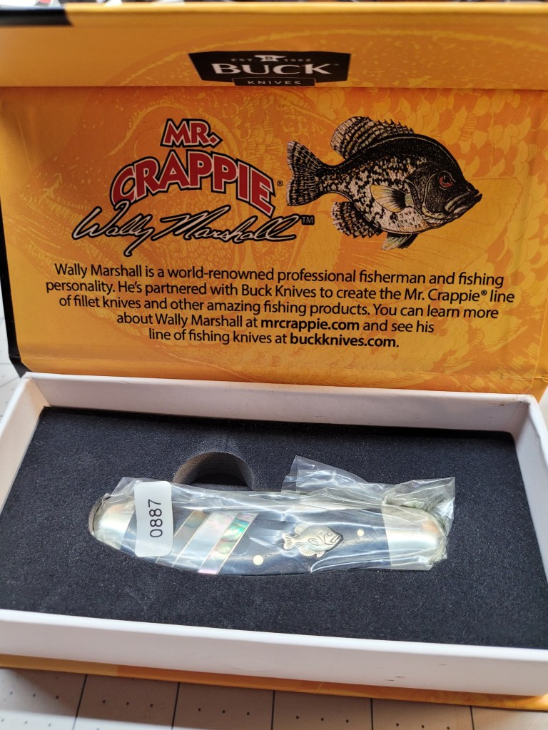 Wally Marshall ( Mr. Crappie ) – Buck Knives – and Smoky Mountain got together a few years back and produced a Buck knife – and it is just about mashing every knife button I have – borderline too cool . . .