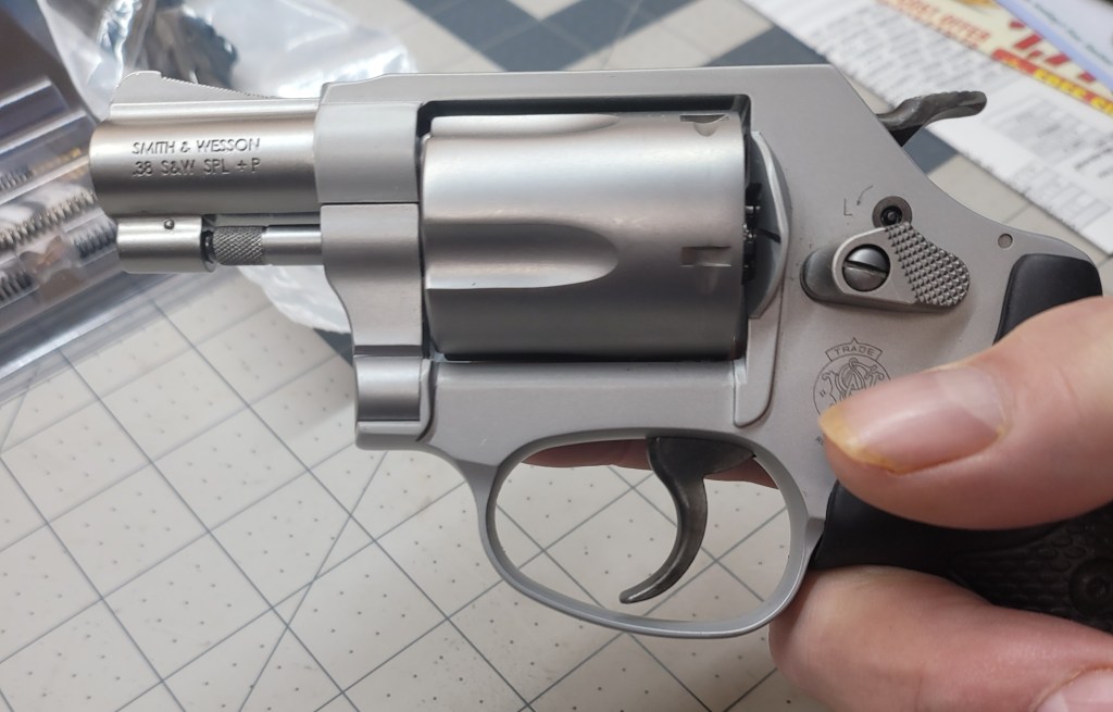 Smith & Wesson Airweight J Frames are really nice for concealed carry – but the trigger pull and the tiny grips are not the greatest – depending on your hand size – if your average like mine? Every time the gun goes bang – the rear of the trigger guard goes whack against your knuckle on your middle finger – after 50 or 100 rounds of practice you learn very quickly NOT to practice with it or how to use your non- dominant hand for every day tasks – the first picture shows the issue clearly . . .
