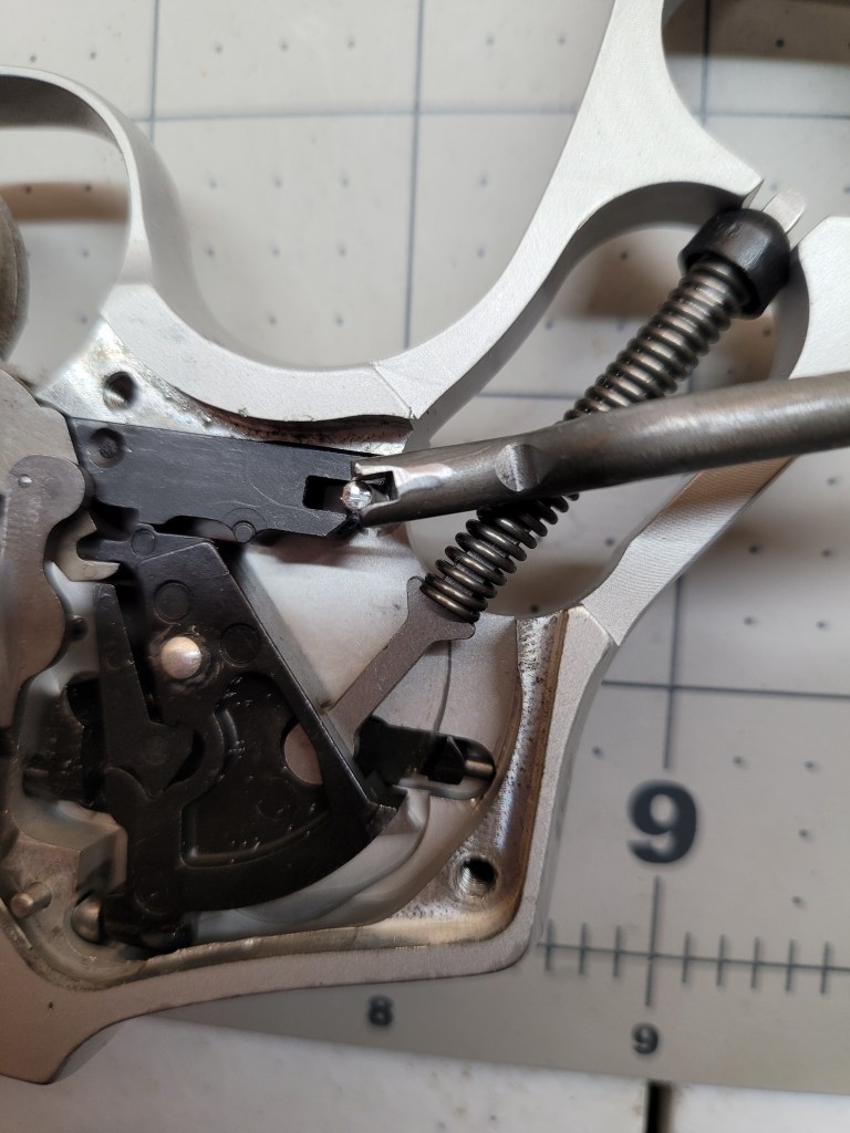 On this particular one it dropped the double action trigger pull to right at 7 lbs 6 oz – and smooth as it’s going to get – came out nice – most of the time you get a trigger pull of about 8 1/2 to 9 lbs – I was pleased with the upgrade to say the least . . .