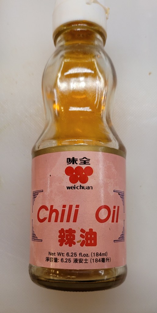 For oil I mix olive oil and Chili Oil half and half – use it for just about everything . . .