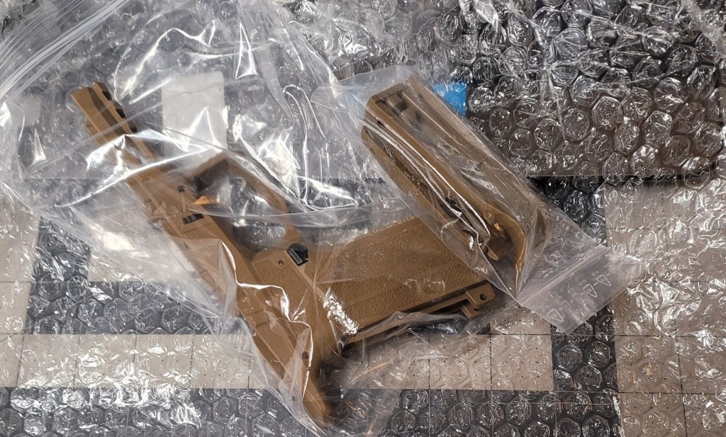 All wrapped up in bubble wrap and packing – from Global Ordnance – the FDE frame kit – YAY!