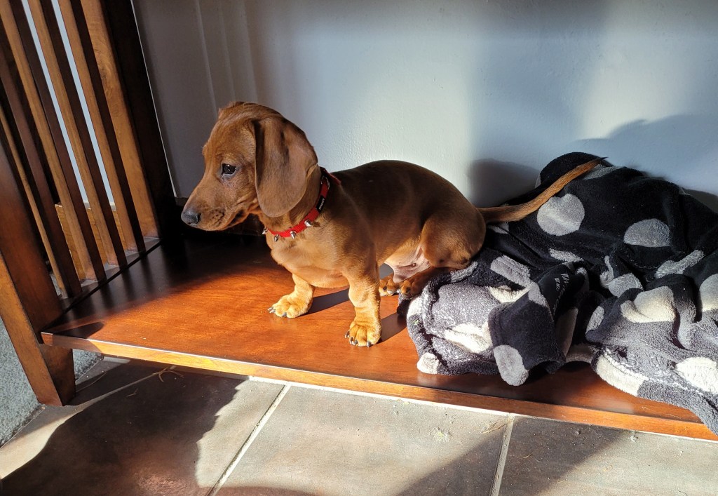 daddy took all the stuff off this shelf where i was getting my crossword puzzle books and domino’s from and put one of my blankets on it for me!