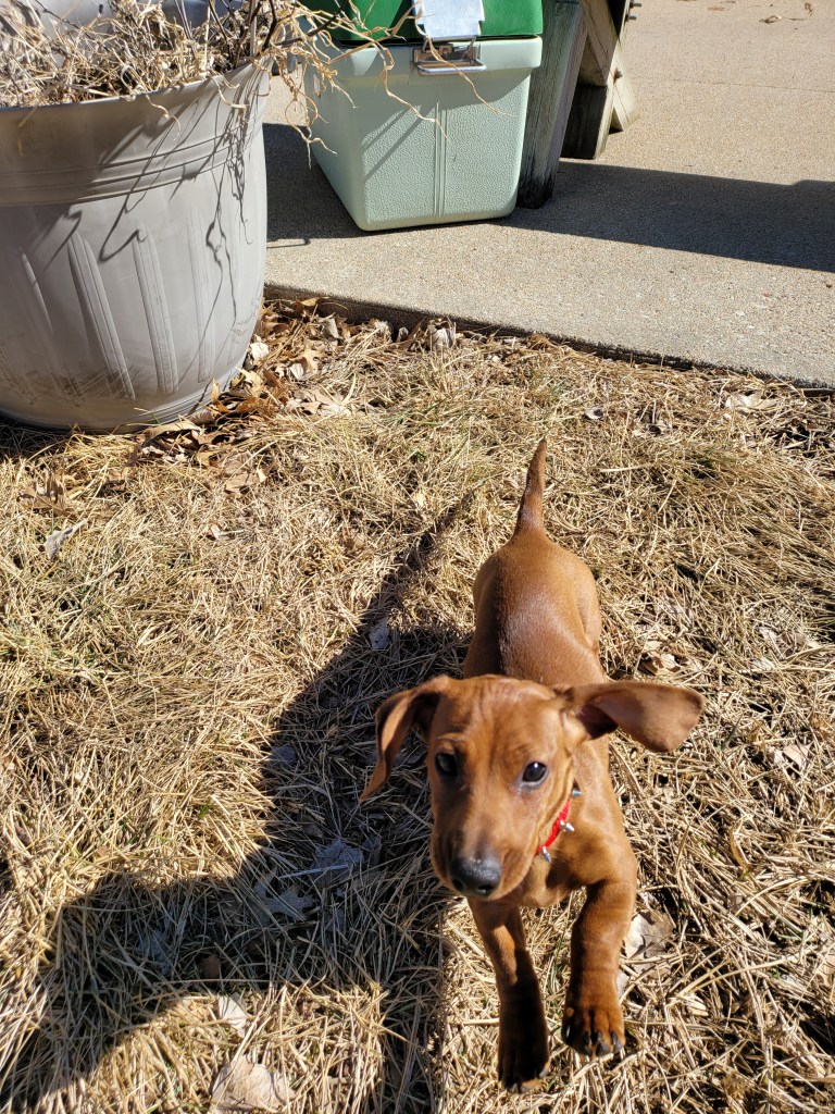 back from the walk – it was short – i guess daddy was tired from running with me – we played in my yard – and the sunshine was wonderful!