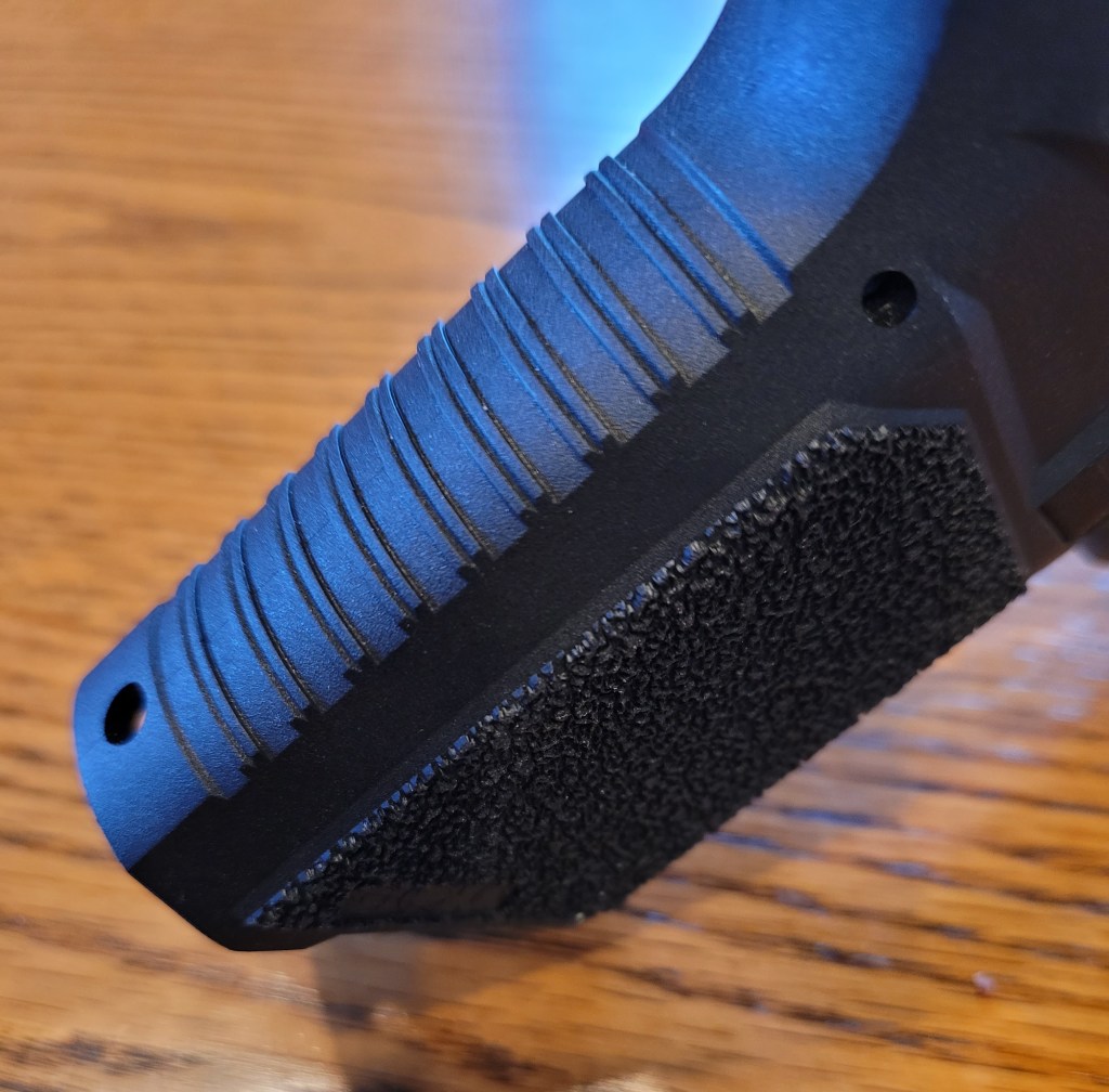 The only change is going to be stair tread tape on both sides above the grip stippling – and the stippling comes across as aggressive but it sure works good . . .