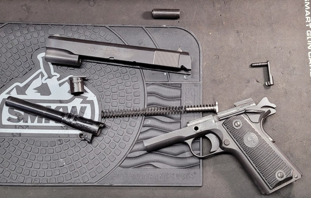 The frame kit is a straight up generic parts kit – to say the trigger pull was a little – how should I put this?? – kludgey? – how about gritty with a definite wall? – After 100 rounds and 500 dry fires and another 100 rounds it is a LOT better. When I get a total of 500 rounds through it I will get the trigger gauge out and see where it’s at. For now I’m going to let all the pieces wear the way they want to then more than likely pull it all apart and do the 25 cent trigger job on it.