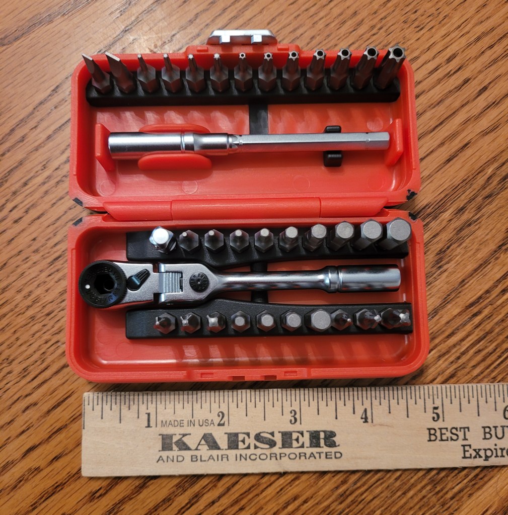 In the shipment was several of these ratchet & bit sets – every review I have read or watched on these has been positive – the cheapy set I bought after selling all my stuff were quite frankly junk . . .