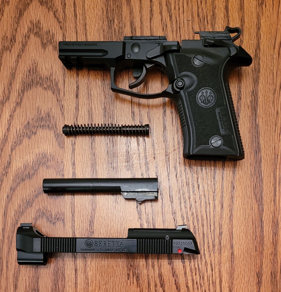 Beretta carried their 90 series take down method right into this one – push the pin and hold it down . . .