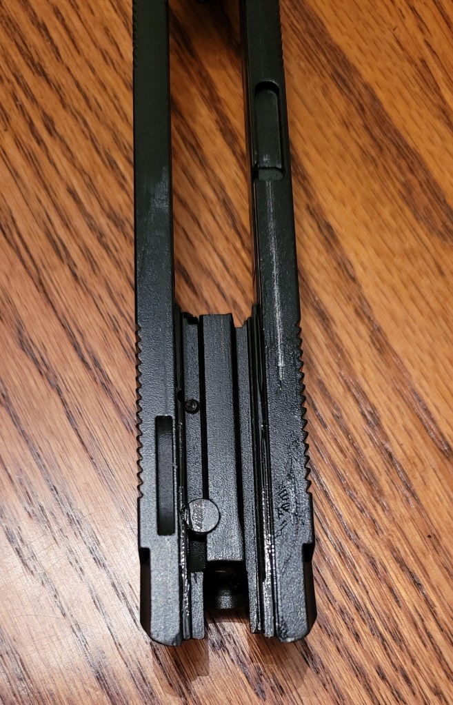 Putting it back together is a little finicky – it’s considered a fixed barrel but it is not pinned to the frame so there is a head scratching moment if you don’t pay attention to what you are doing – SOOTCH00 shows this really well at about the 18:00 minute mark in <<<THIS VIDEO>>> . . .