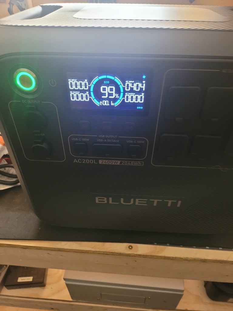 And no sooner than I took the pic it hit 100% – I believe that’s a desk lamp running off of it just to check for AC output . . .