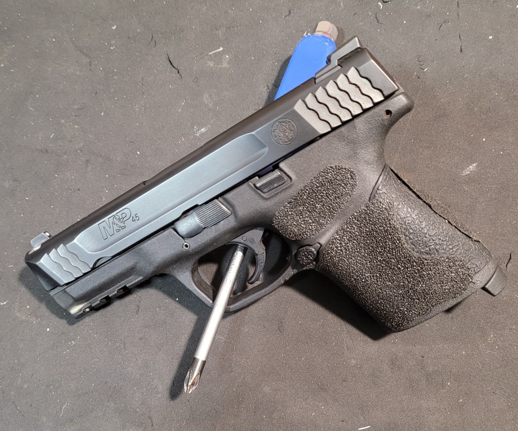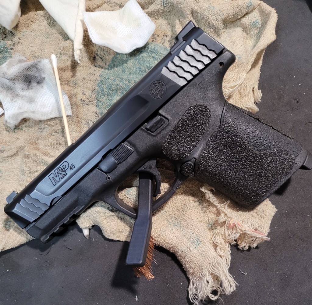 Both are eight round magazines – it will be interesting to see how they shoot next to each other – 1911 has a longer sight radius and a much better trigger and 10oz more weight to soak up recoil – the S&W M&P line have decent ( for a striker fired pistol ) triggers and unlike the Shield side of the house, they don’t have that “damn this grip is narrow” feeling. I will have to look around and see if the grip strap set is available as a separate item(s).