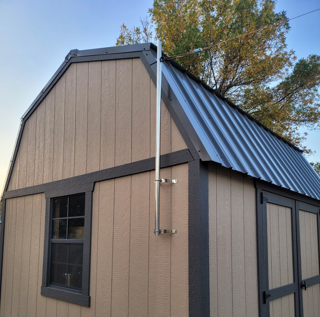 Used the D ring that was on the side facing the tree not the shed – grand daughter didn’t want to hang off the side of the ladder to get to the shed side of the mast to add another D ring – I tried the old “no guts – no glory” thing with her – she asked if I was going to do it myself and that was a simple no – so we used the existing D ring and just came around the mast with the wire.