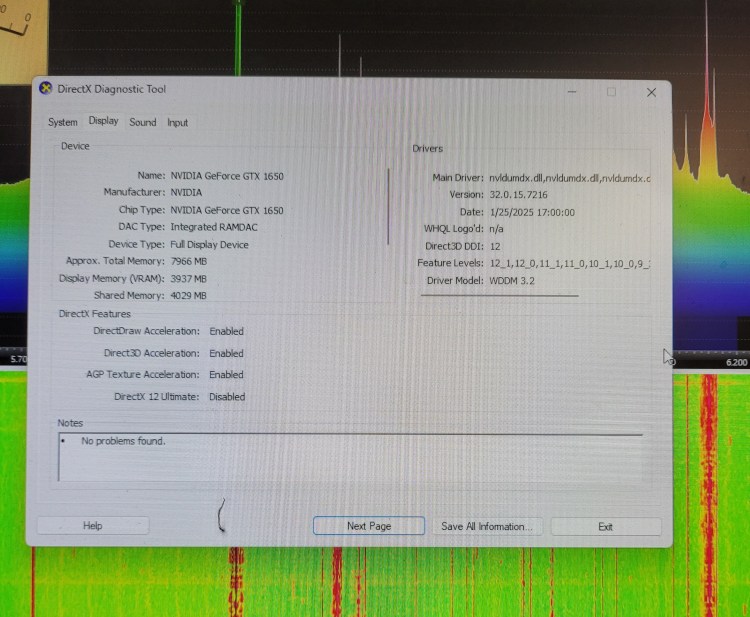 As I said in the last post – bought this for one purpose – to run SDR-Console and it does VERY well. I stumbled across the software about 3 years ago and kept trying to run it on various computers with no joy. The software actually has DirectX diagnostic tools built in so it can look at your graphics card and let you know how it’s performing. Pretty cool stuff!
